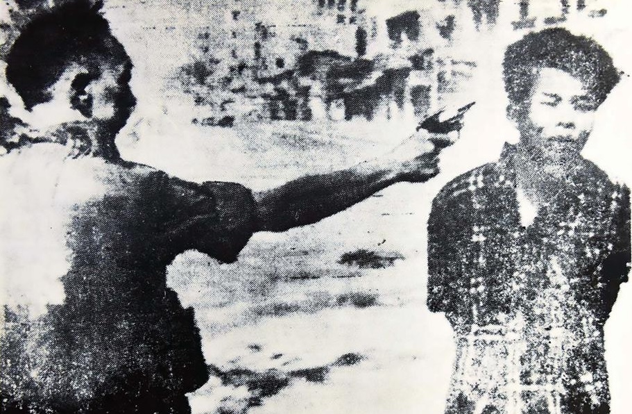 Foto karya Edward T. Adams, memperlihatkan Nguyen Ngoc Loan, seorang jenderal Angkatan Darat Vietnam Selatan, mengeksekusi seorang tahanan Viet Cong, Nguyen Tat Dat, tanggal 1 Februari 1968, di sebuah jalan di kota Saigon, kini Ho Chi Minh.