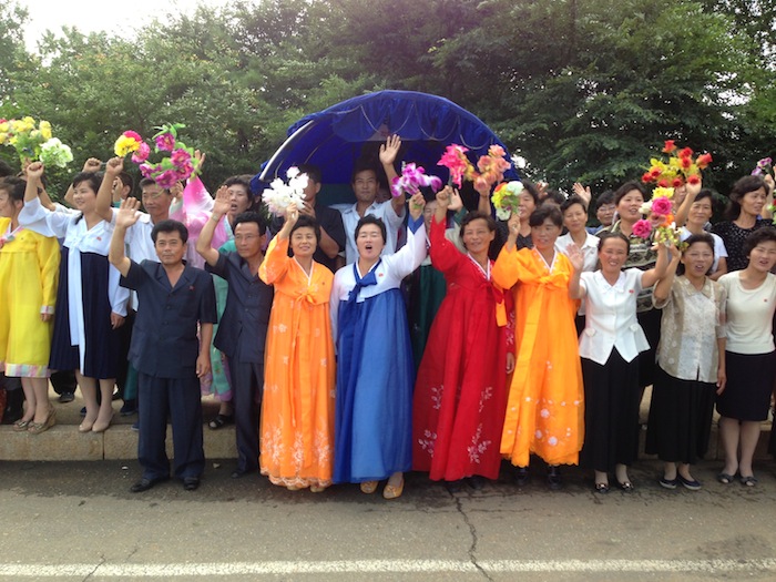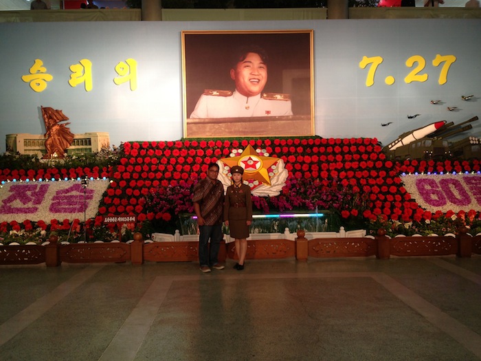 8.00 Attending the military parade and public procession at Kim Il Sung Square on the occasion of the 60th anniversary of the victory in the great Fatherland War. Invited by the Ministry of People’s Armed Forces of the DPRK National Defense Commission and the Pyongyang Municipal Committee of the Worker’s Party.