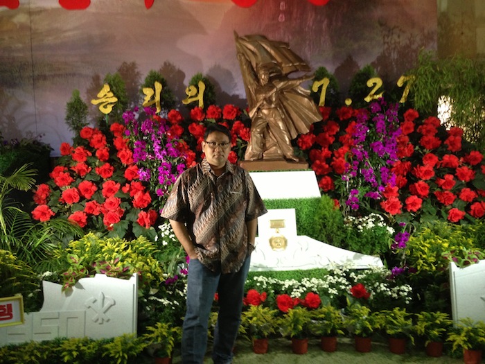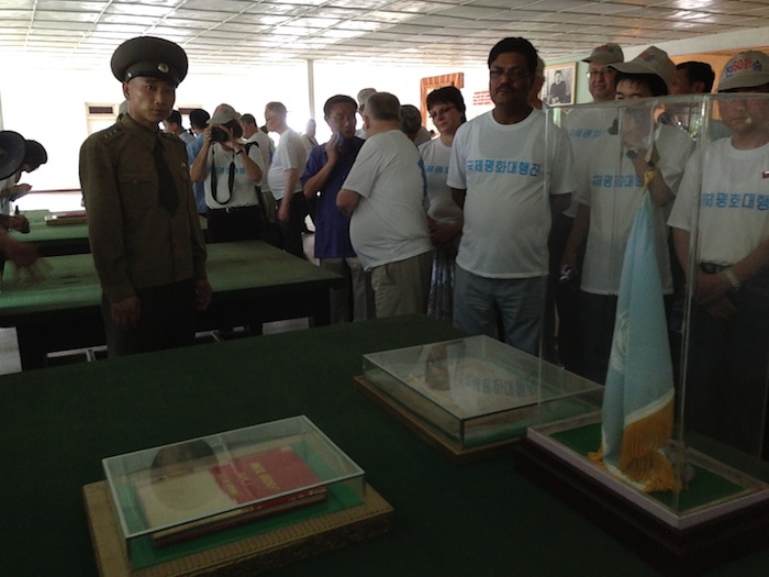 11.30 Laying a floral basket and flower bouquets before the statue of President Kim Il Sung at Janam Hill in Kaesong City. Short visit to Kaesong’s Chanamsan Hotel.