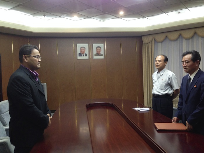 The conversation was translated by Hwang Sung Chol, the Secretary General of the CCRFC’s Australia and New Zealand Department.
