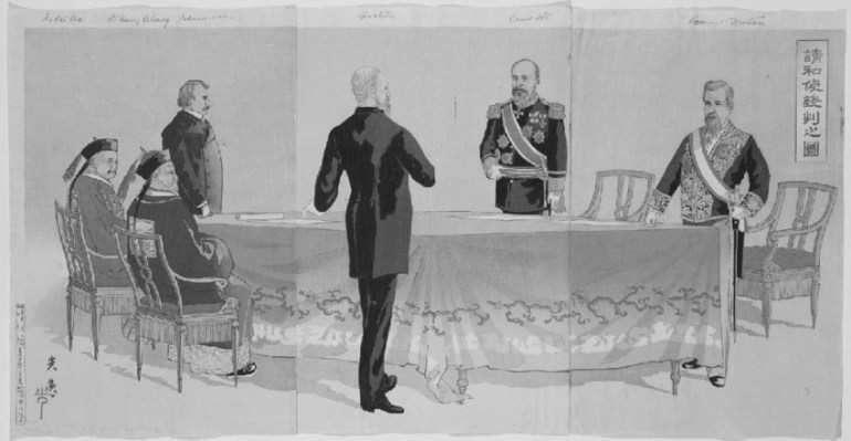Jepang dan China akhirnya menandatangani Perjanjian Shimonoseki pada tanggal 17 April. Kekaisaran Qing sebagai pihak yang kalah dalam Perang China-Jepang Pertama itu setuju untuk mengundurkan diri dari Korea, dan menyerahkan Taiwan serta Kepulauan Pescadores kepada Jepang.