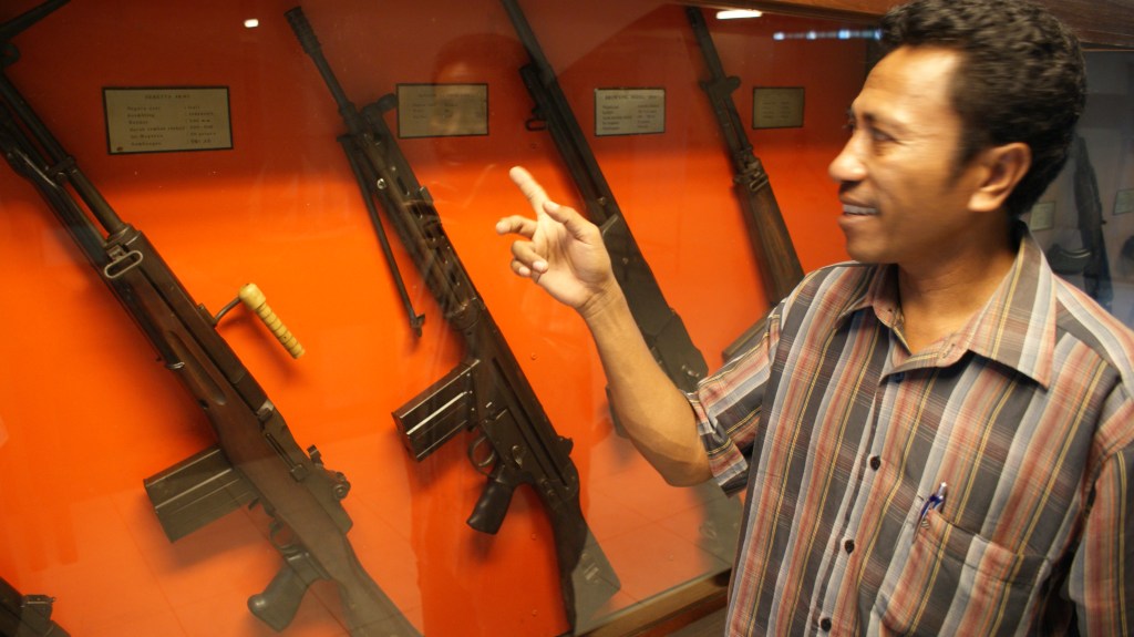 Saya dan Bung Jose mengamati satu persatu senjata yang dipamerkan di museum itu. Dia lebih paham soal senjata. Beberapa kali dia berhenti, menjelaskan satu dua senjata, yang kini saya pun sudah lupa.