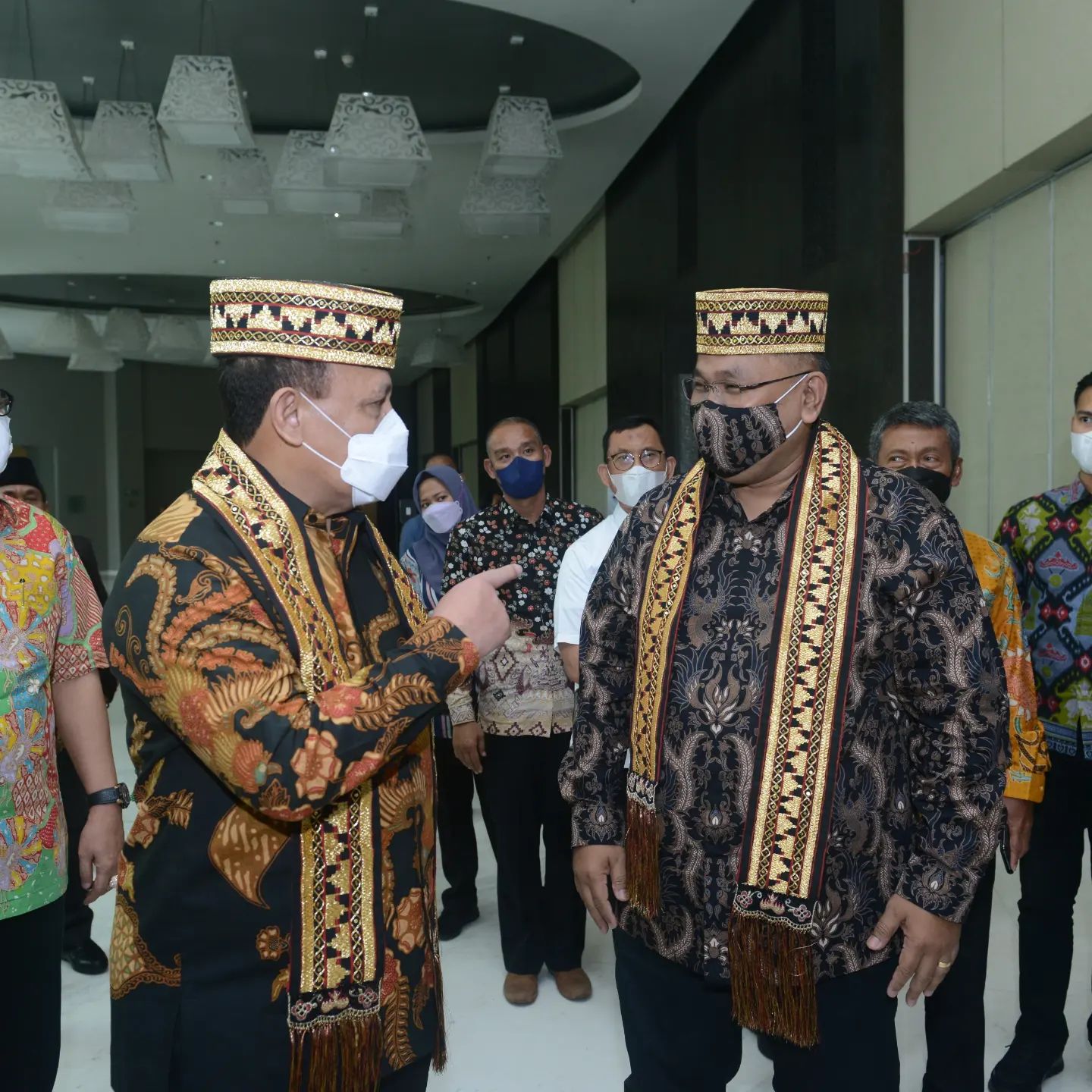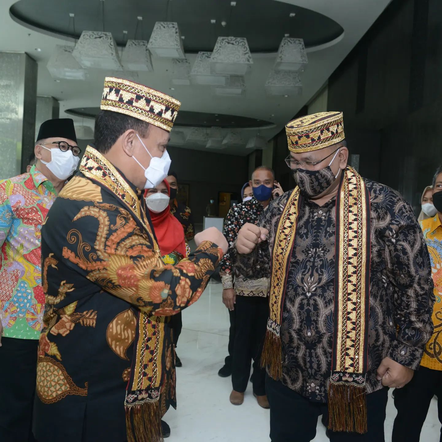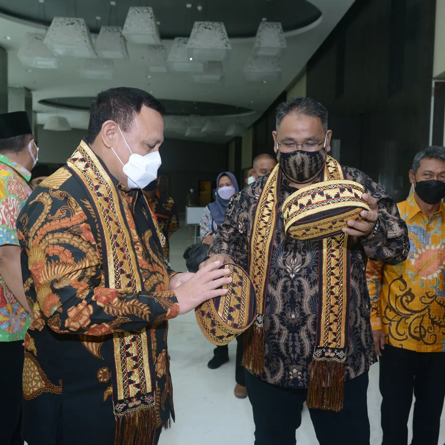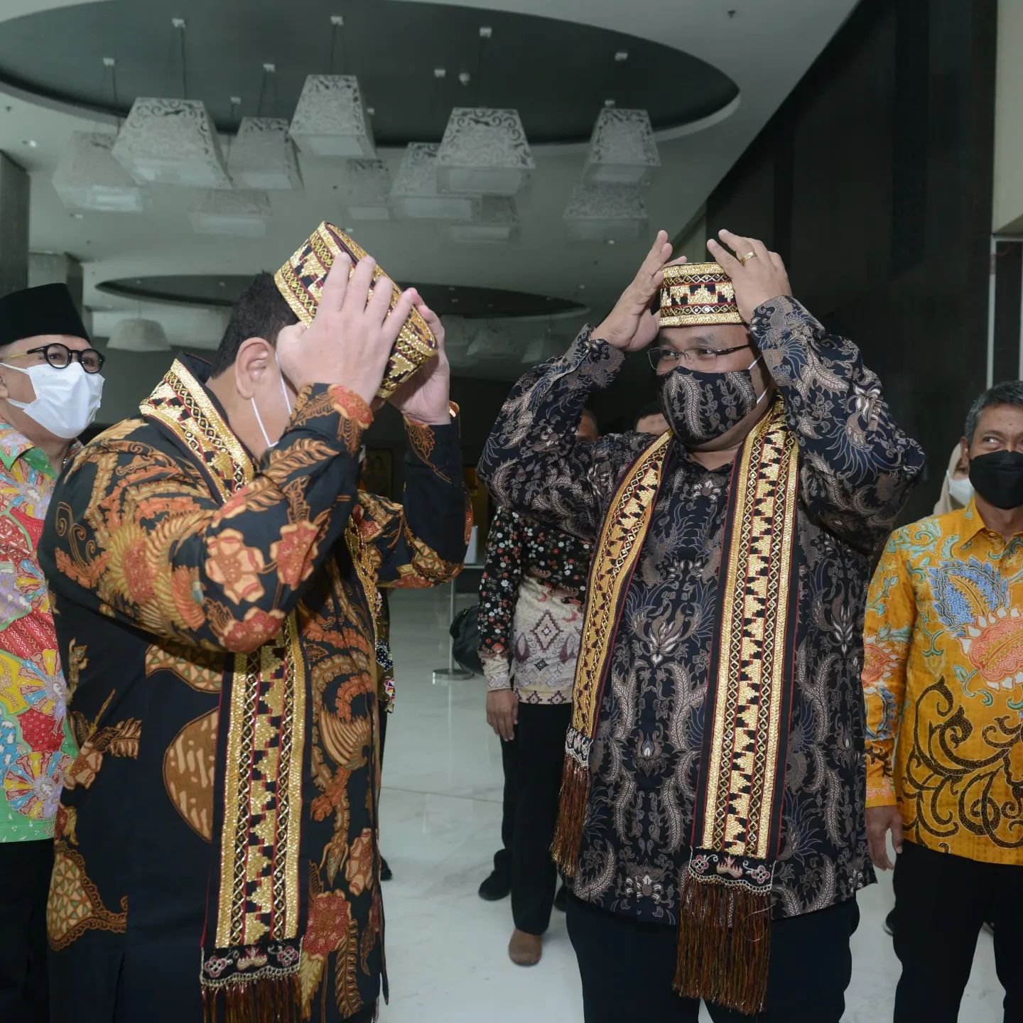 Saya mengangguk. Lalu kami saling membuka peci yang baru dipakaikan oleh sepasang remaja penyambut di depan ball room Novotel tempat pelantikan Pengda JMSI Lampung.