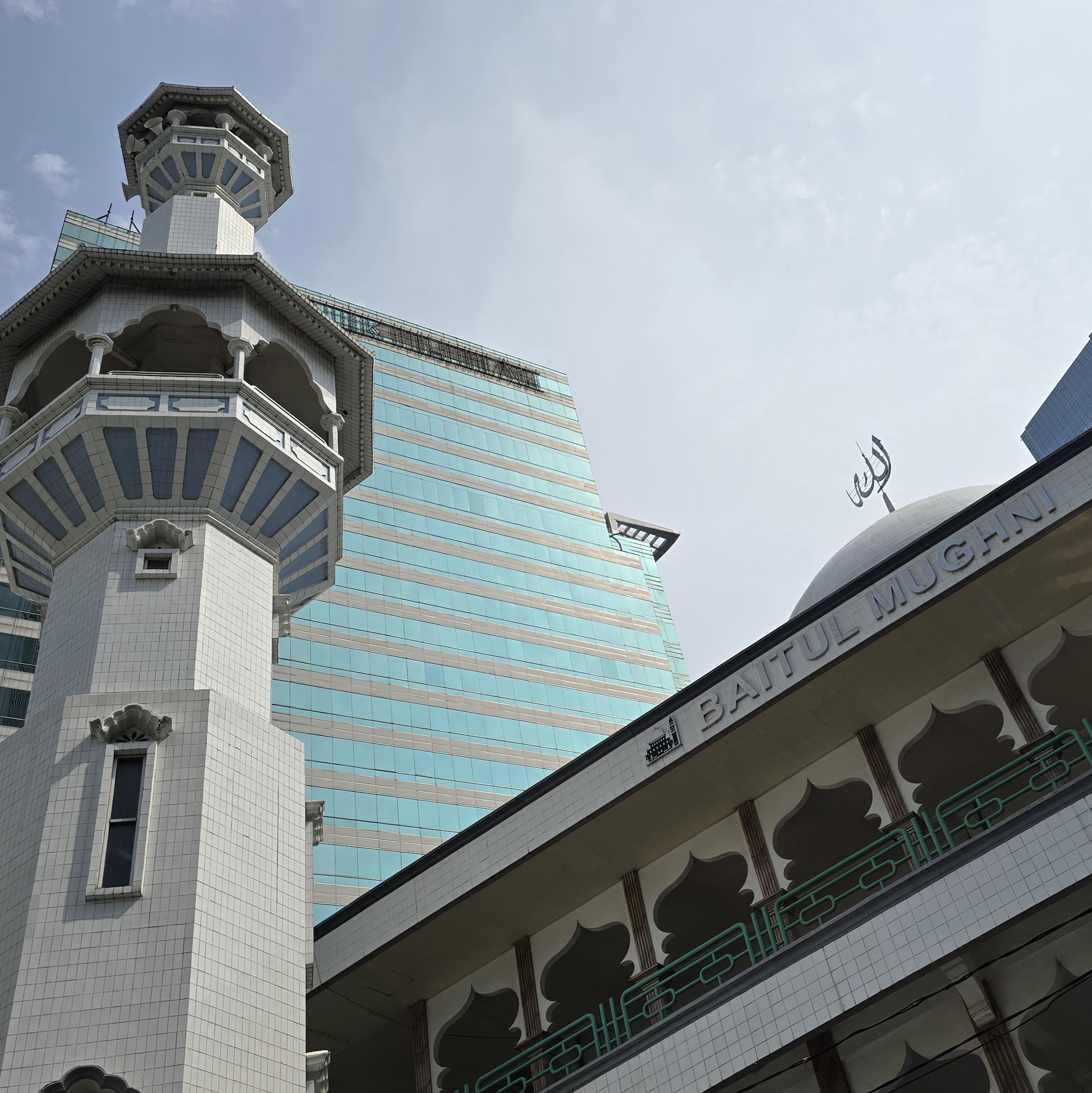 Kemarin, sambil menunggu waktu pertemuan di Mega Kuningan, saya sempatkan shalat Zuhur di Masjid Jami Baitul Mughni di Jalan Peltu Rahmad Sidup yang tidak jauh dari simpang pertemuan dengan Jalan Jend. Gatot Subroto.