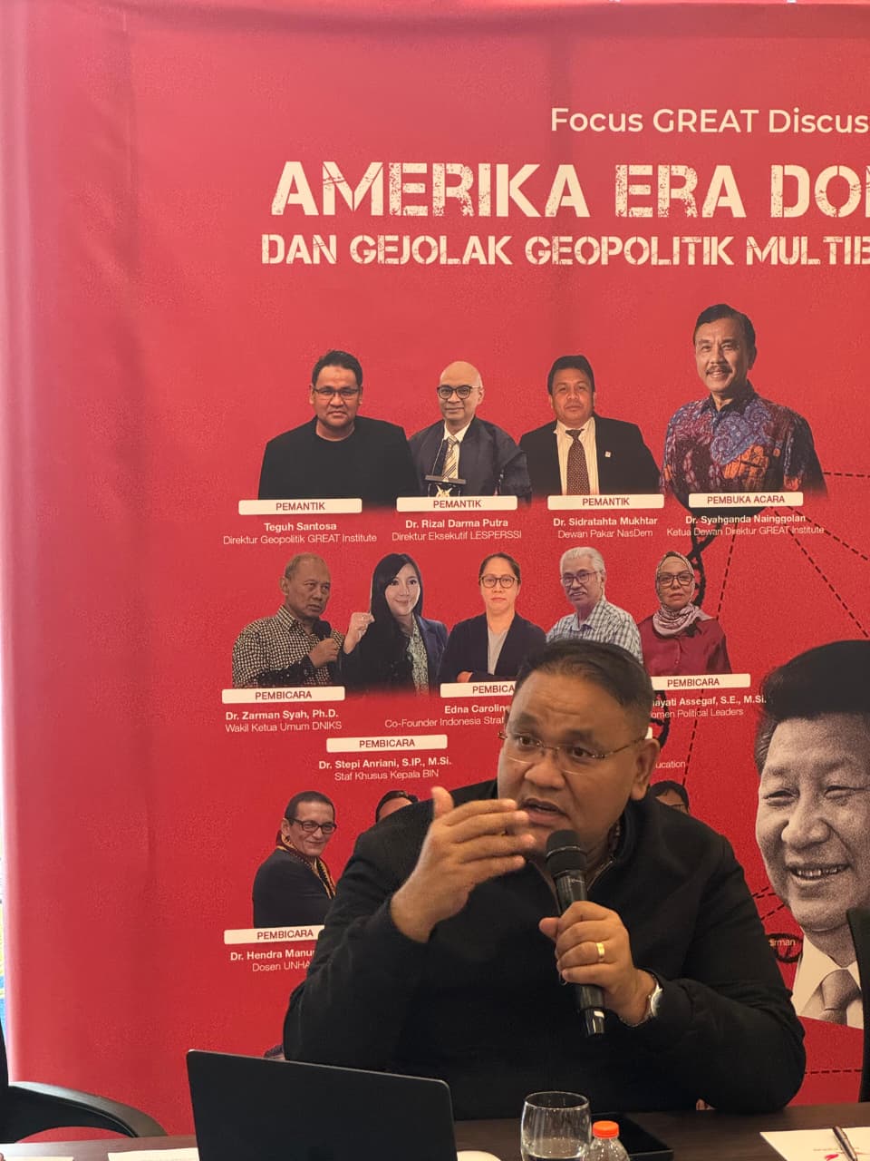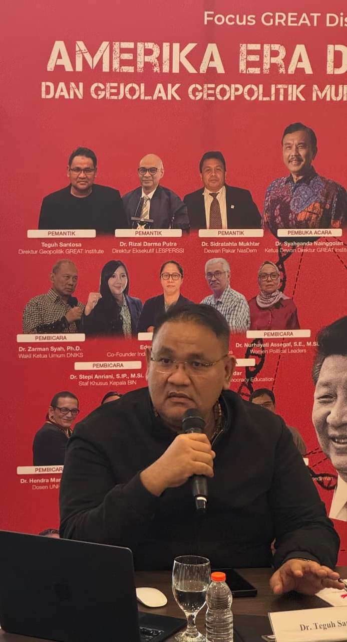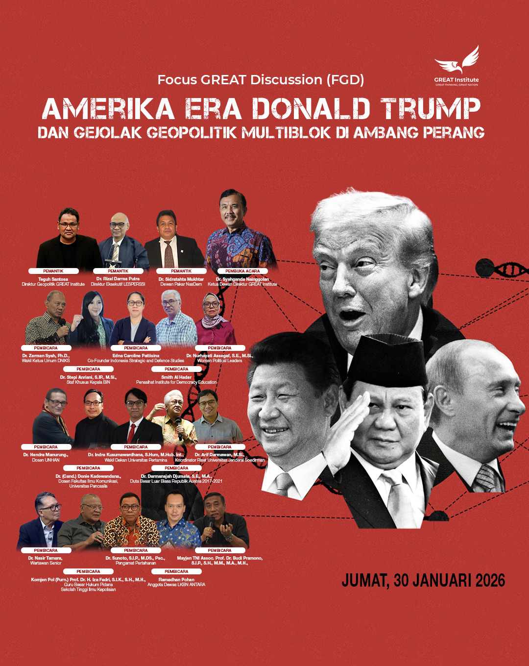 Artikel ini diambil dari closing statement Direktur Geopolitik GREAT Institute, Dr. Teguh Santosa, pada Focus GREAT Discussion bertema “Amerika Era Donald Trump dan Gejolak Geopolitik Multiblok di Ambang Perang” di Kantor GREAT Institute di Jakarta Selatan, Jumat, 30 Januari 2026.