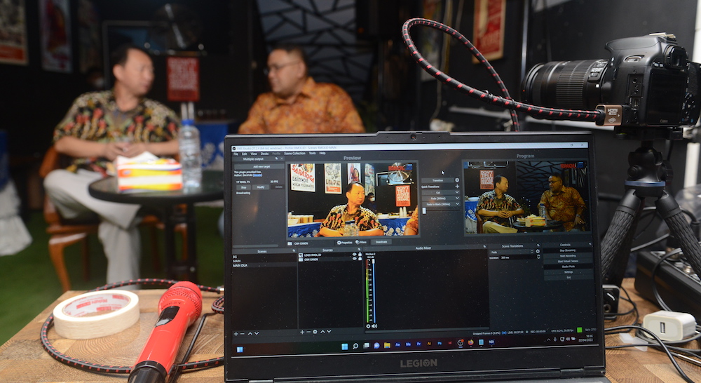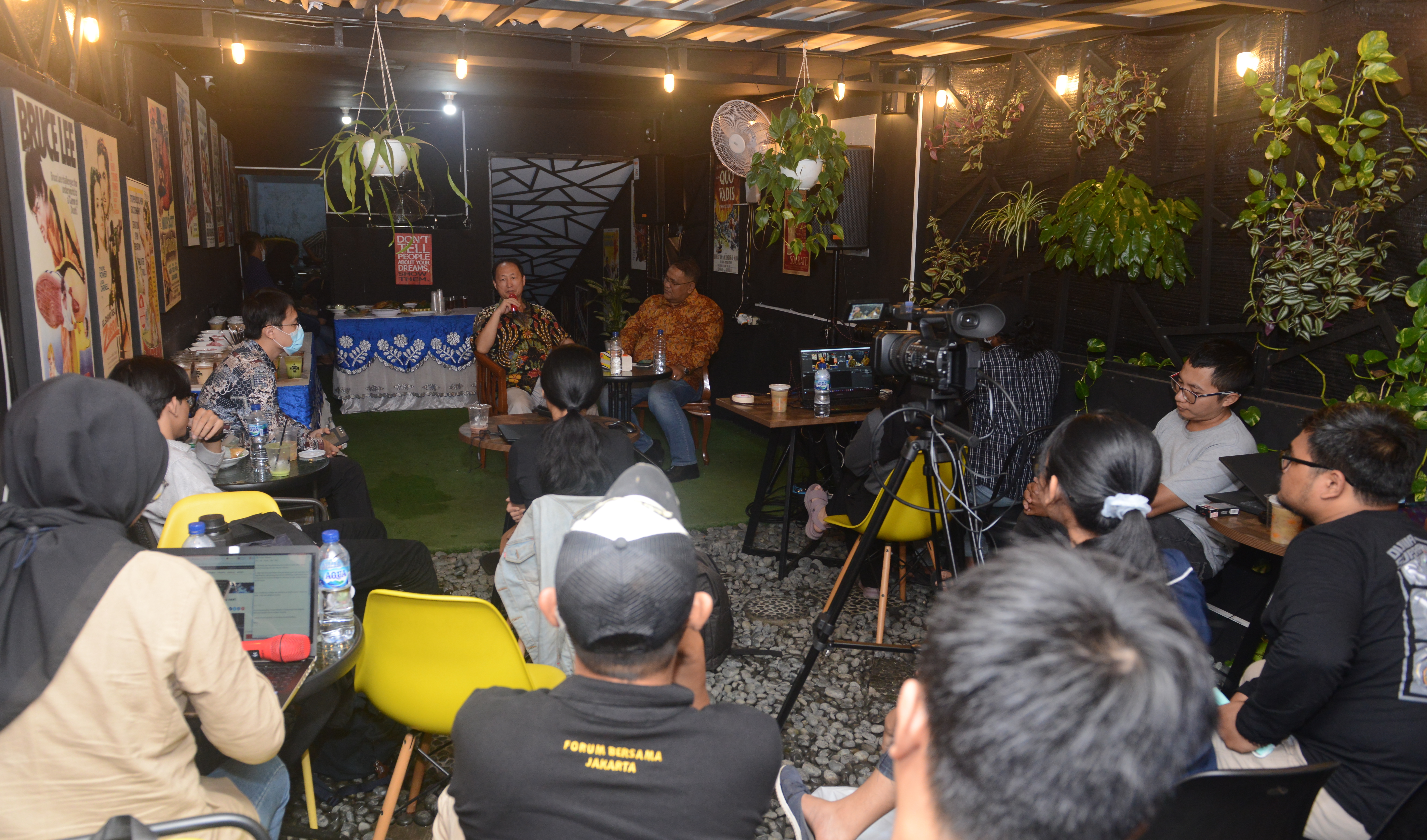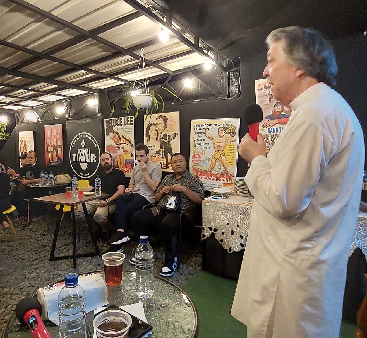Peluncuran dua buku, “Perdamaian yang Buruk, Perang yang Baik” dan “Buldozer dari Palestina” karya CEO RMOL Network, Teguh Santosa, di Jaya Suprana School of Performing Arts di Mall of Indonesia, Kelapa Gading, Jakarta, pada Minggu (30/7) terasa tidak biasa.