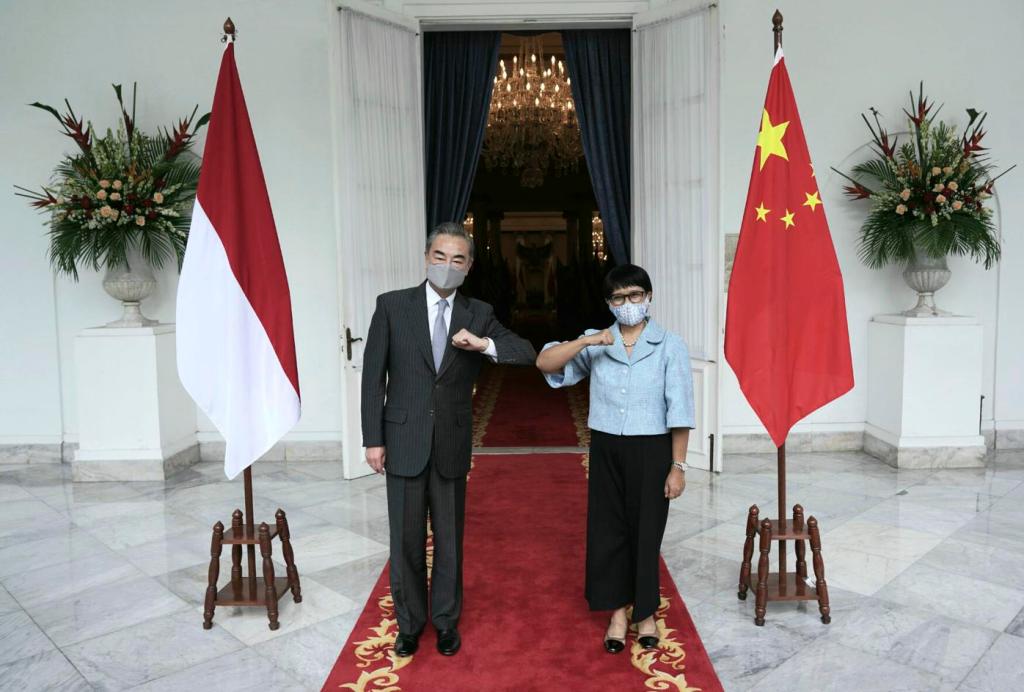 Menlu RI Retno Marsudi (kanan) dan Menlu China Wang Yi.