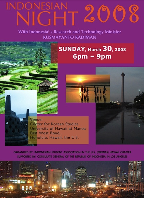 2008 Indonesian Cultural Night with Mr. Kusmayanto Kadiman