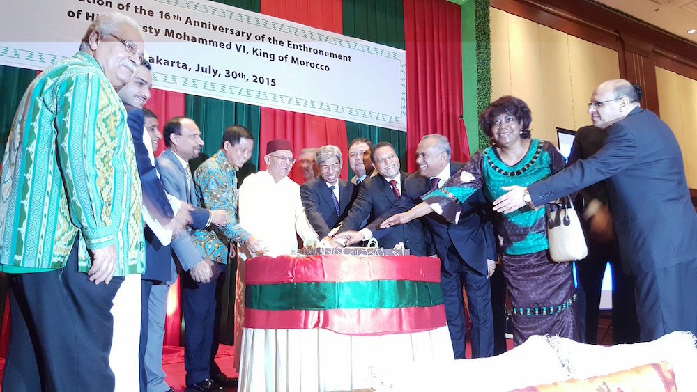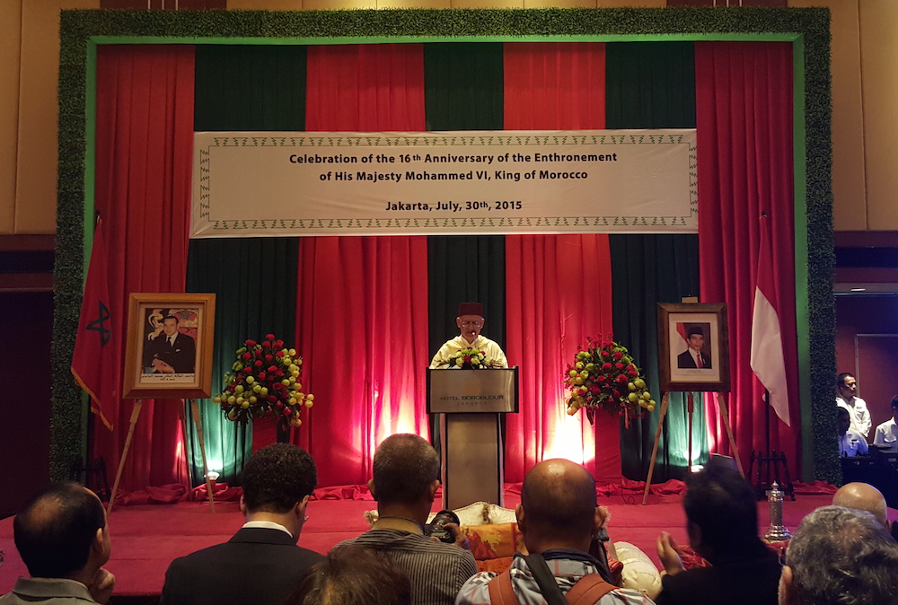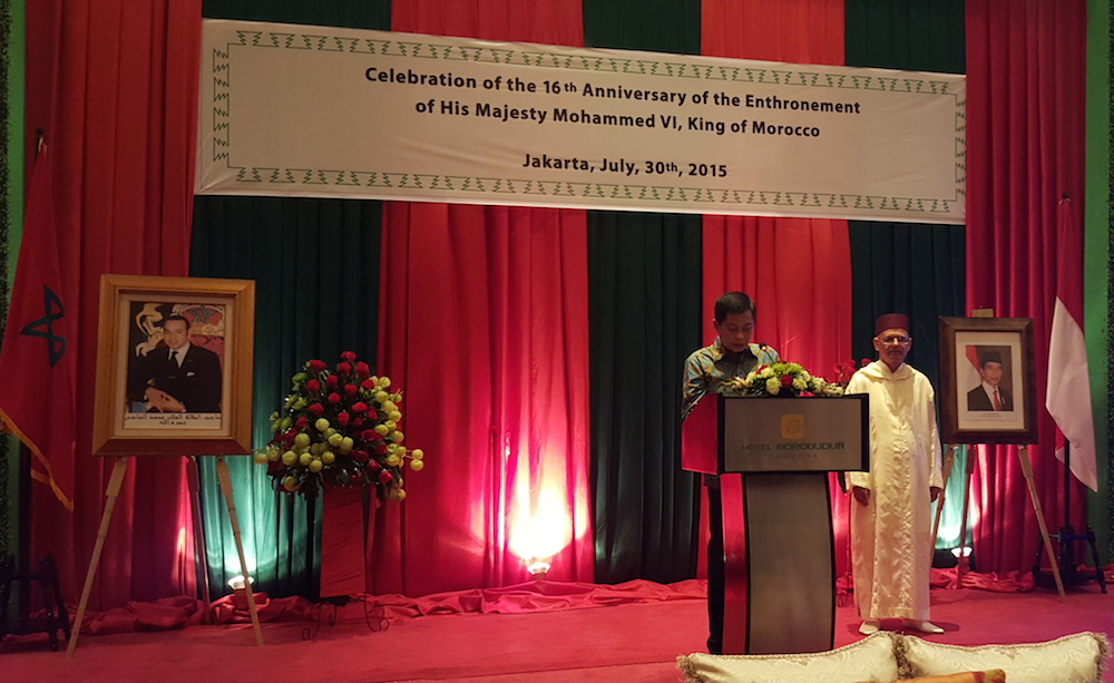 Ada yang tidak biasa dalam resepsi Perayaan ke-20 Tahun Hari Penobatan Muhammad VI sebagai Raja Maroko yang diselenggarakan di Hotel Four Season, Jalan Jend. Gatot Subroto, Jakarta, Selasa malam (30/7).