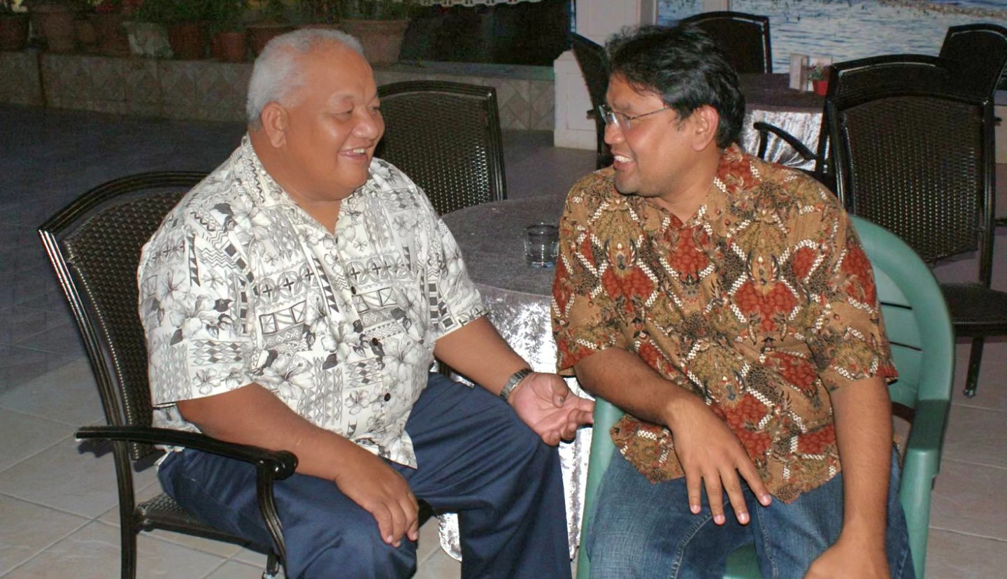 Pria yang bersama saya ini adalah John R. Haglelgam. Dia narasumber kami malam itu. Membagikan cerita mengenai perkembangan politik kontemporer Mikronesia yang unik.