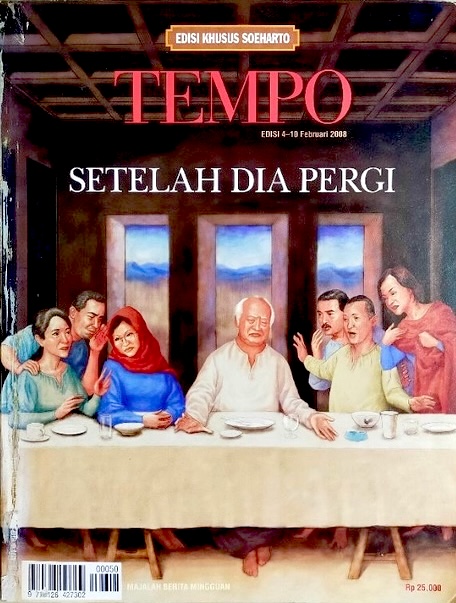 SAMPUL Majalah Berita Mingguan Tempo edisi 50/XXXVI/04-10 Februari 2008 sedang jadi buah bibir. Ilustrasi “Perjamuan Terakhir Soeharto” memperlihatkan Soeharto dan anak-anaknya sedang duduk menghadapi meja panjang. Setting ruangan dan latar belakang ilustrasi itu mengingatkan orang pada lukisan “The Last Supper” karya Leonardo da Vinci.