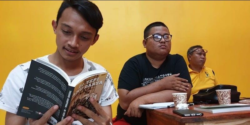 Peluncuran dua buku, “Perdamaian yang Buruk, Perang yang Baik” dan “Buldozer dari Palestina” karya CEO RMOL Network, Teguh Santosa, di Jaya Suprana School of Performing Arts di Mall of Indonesia, Kelapa Gading, Jakarta, pada Minggu (30/7) terasa tidak biasa.