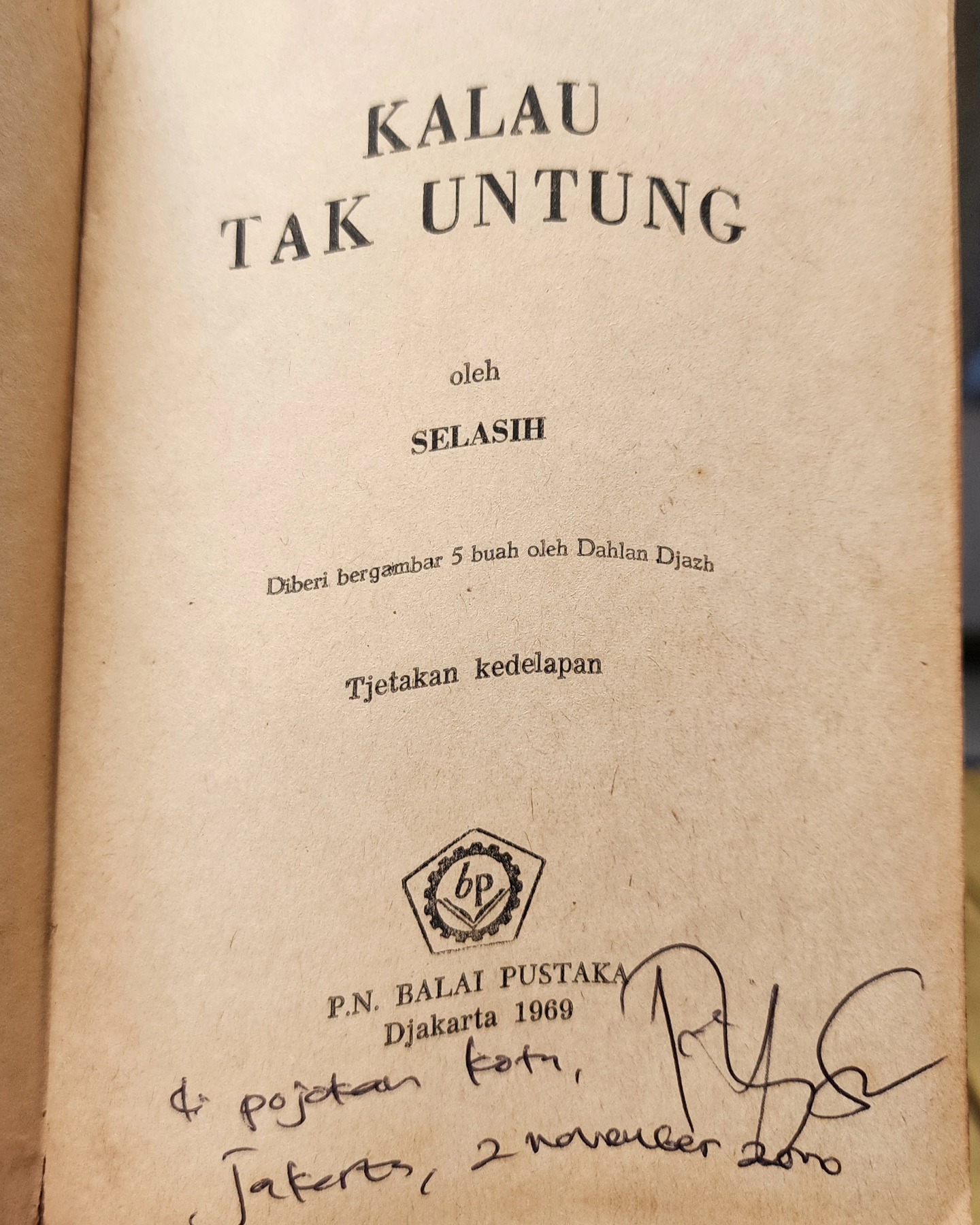 “Kalau Tak Untung” karya Selasih, diterbitkan Balai Pustaka tahun 1934. Ditulis Selasih setahun sebelumnya, novel ini berkisah tentang kasih tak sampai antara jaka dan dara, Masrul dan Rasmani.