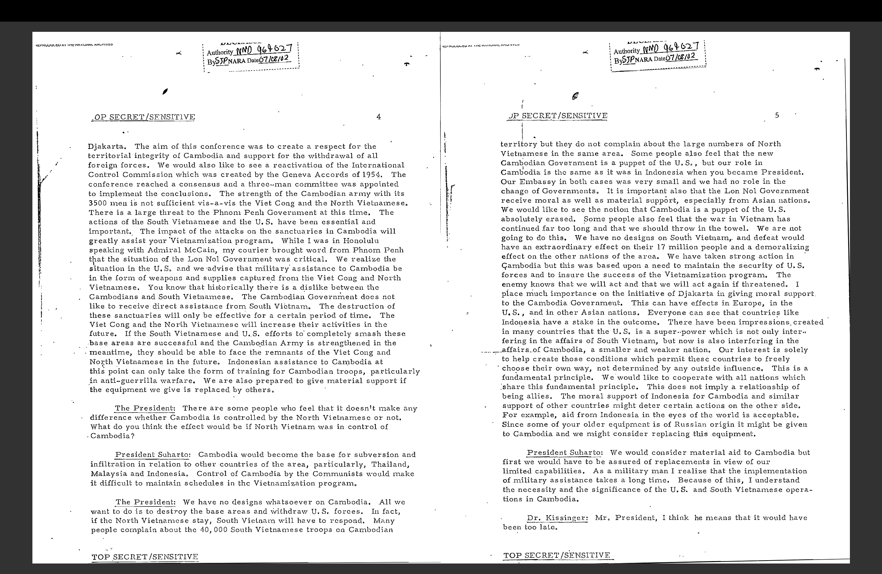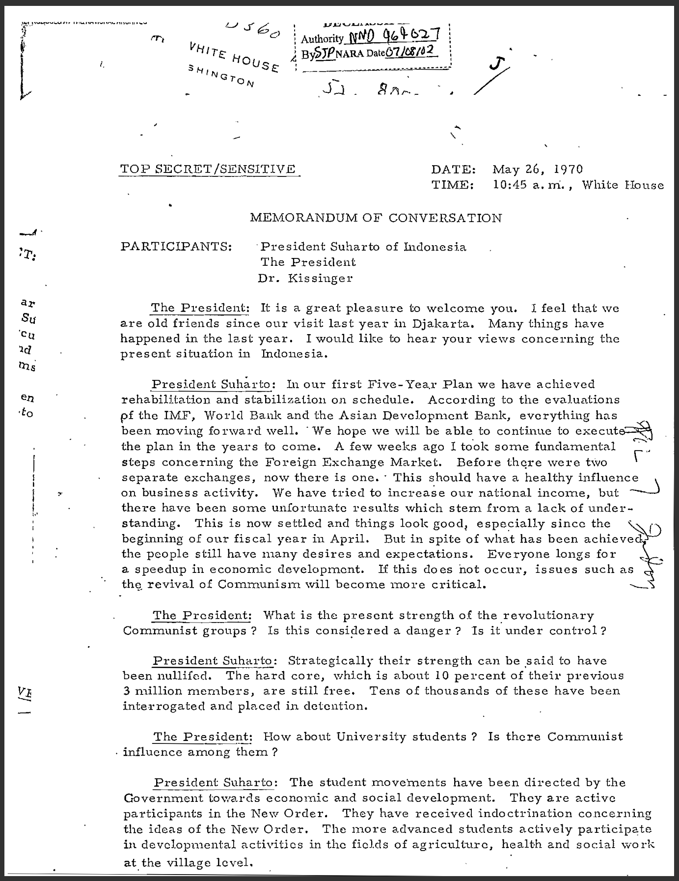 Kumpulan dokumen yang selama puluhan tahun ini ditutup-tutupi diberi judul “Suharto: A Declassified Documentary Obit” dan dirilis dalam National Security Archive Electronic Briefing Book No. 242.